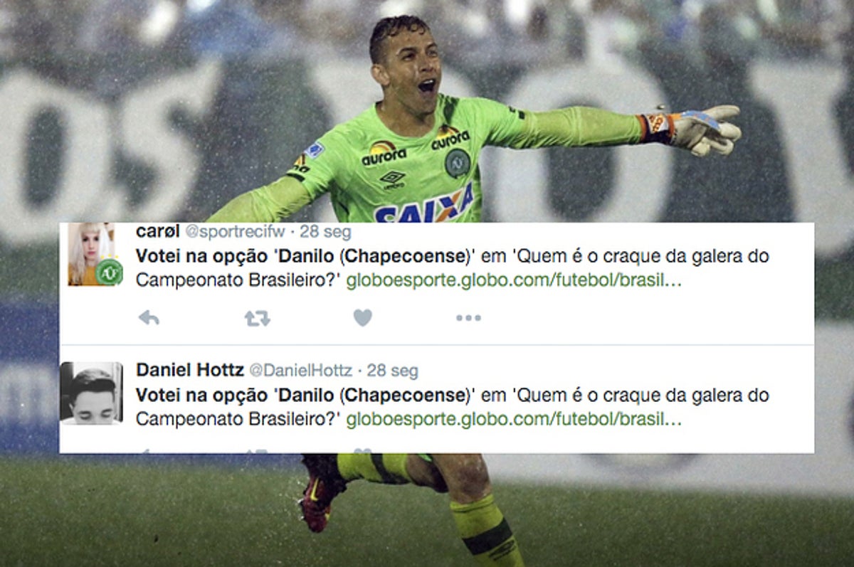 Danilo In Memoriam E Eleito O Craque Da Galera Confederacao Brasileira De Futebol. Jogador, uma das 71 vítimas da tragédia com o voo da equipe catarinense, é homenageado através do voto popular. Chapecoense goalkeeper danilo has been named the fans' best player in the campeonato brasileiro by the brazilian football confederation (cbf) after he died. Não houve um grande destaque na equipe, mas o jogador mais regular, que ficou em melhor posição na bola de prata foi o goleiro danilo. Médico colombiano guilherme molina dá posição oficial atualizada, e o goleiro danilo que era considerado um dos cinco sobreviventes iniciais, não resistiu aos ferimentos e veio a óbito. A relação de danilo com o futebol começou ainda na infância, já que morava em frente a um campinho onde jogava com os colegas. 4:57 sport play hd 490 946 просмотров. Goleiro não gosta, mas tivemos narração de gol e, no quadro derrapada, uma trapalhada de um goleiro bem conhecido. Um dos sobreviventes do acidente aéreo com o voo do verdão do oeste, em novembro de 2016, ruschel visitou o filho de danilo, uma das vítimas após um sábado de homenagens às vítimas da desastre aéreo que atingiu à equipe da chapecoense, ruschel visitou lorenzo e postou em seu. O amigo sérgio maia, que. A chapecoense fez um campeonato mediano e 2015. A tragédia aérea matou mais de 70 pessoas e espalhou tristeza entre fãs e não fãs de futebol. Sua mãe ilaídes recebe o troféu. Goleiro danilo não sobrevive à tragédia com avião da chapecoense. Um é o jogador neto do chapecoense que foi encontrado vivo no início da manhã que passou por cirurgia. No dia do goleiro, a voz da guaíba levou um papo com um camisa 1 que joga na série 'a' do brasileiro e que está numa final estadual: